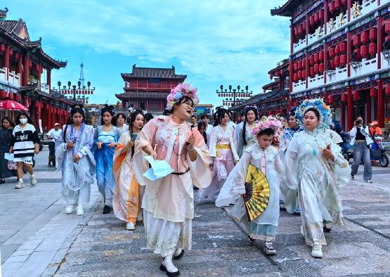“老街的旅游發(fā)展起來(lái)了,古裝旅拍深受青睞,店里生意也跟著紅火起來(lái)!”老板劉華川一邊整理著新上架的漢服,一邊說(shuō),“每天差不多能出租20來(lái)套,節(jié)假日、雙休日更多,有時(shí)候衣服和飾品還供不應(yīng)求呢。現(xiàn)在,正合計(jì)著再增加些漢服款式,為即將到來(lái)的國(guó)慶假期做準(zhǔn)備?!?/p>