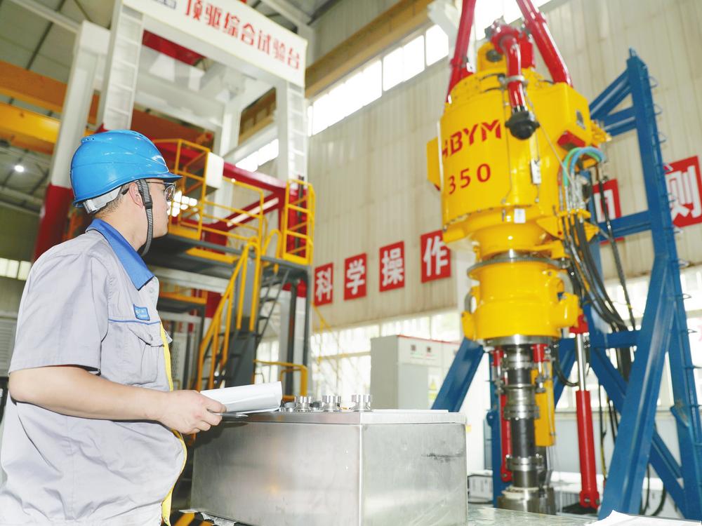 近日,在任澤區(qū)河北永明地質(zhì)工程機械有限公司,工人正在調(diào)試頂驅(qū)設(shè)備。