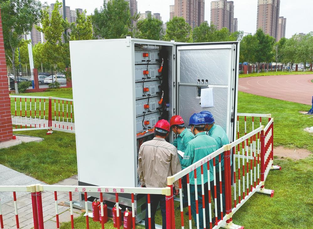 6月5日,國網(wǎng)邢臺供電公司員工在市第一中學(xué)新校區(qū)高考考點,檢查應(yīng)急用電系統(tǒng)儲能電池狀態(tài)和室內(nèi)用電設(shè)施,確保高考期間電力供應(yīng)穩(wěn)定可靠。 韓文洲、甄紅芳攝