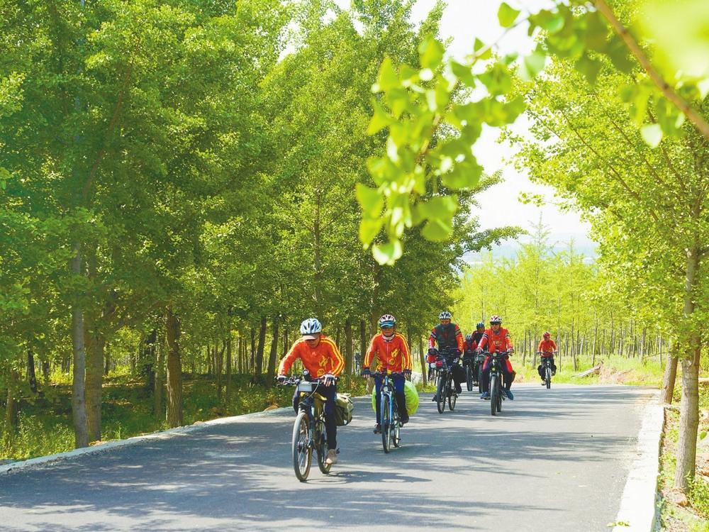 圖為騎行愛好者在沙河市欒卸風景區(qū)銀杏林自行車賽道騎行。(資料圖片) 本報記者 韓文洲攝