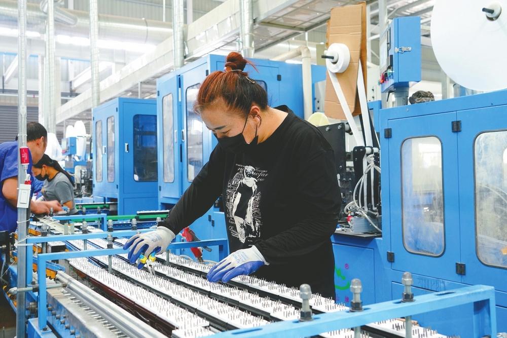 7月3日,在河北天一電器有限公司車間,工人正在生產(chǎn)線上作業(yè)。石瑩瑩攝