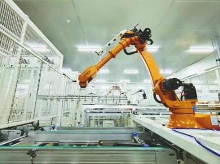 日前,華創(chuàng)國晶(河北)新能源有限公司生產(chǎn)車間內(nèi),機械手臂正在有序作業(yè)。 (資料圖片)
