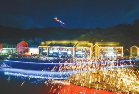 街區(qū)沿河道打造了夜色景觀帶,燈光亮起時,河道兩岸流光溢彩,與太行山村的夜色構(gòu)成一幅靜謐的迷人畫卷。