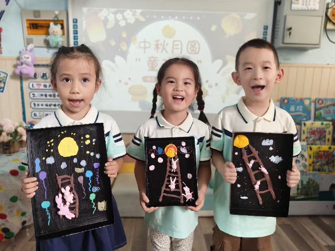 中秋的月光,照進(jìn)童真的眼;童真的手,捧出團(tuán)圓的心。小朋友齊動手,把一輪圓月“裝”進(jìn)作品,也把一份文化“收”進(jìn)童年。圓圓的月亮,長長的天梯,活潑可愛的小兔子,寄托著我們思念!愿大家年年團(tuán)圓,快樂每一天。
