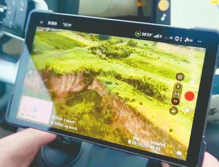 無人機騰空而起,打破雨后的寧靜。民警王驍熟練地操控著遙控器,屏幕上的畫面不斷切換,鏡頭下的河灘地貌一覽無余。