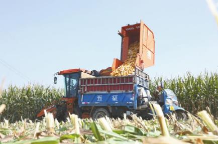 10月14日,在南和區(qū)閻里鄉(xiāng)金沙河農(nóng)作物種植專業(yè)合作社的基地里,農(nóng)民駕駛收割機(jī)搶收玉米。目前,我市各地農(nóng)民搶抓晴好天氣開展秋糧搶收。 韓文洲、冀云飛攝